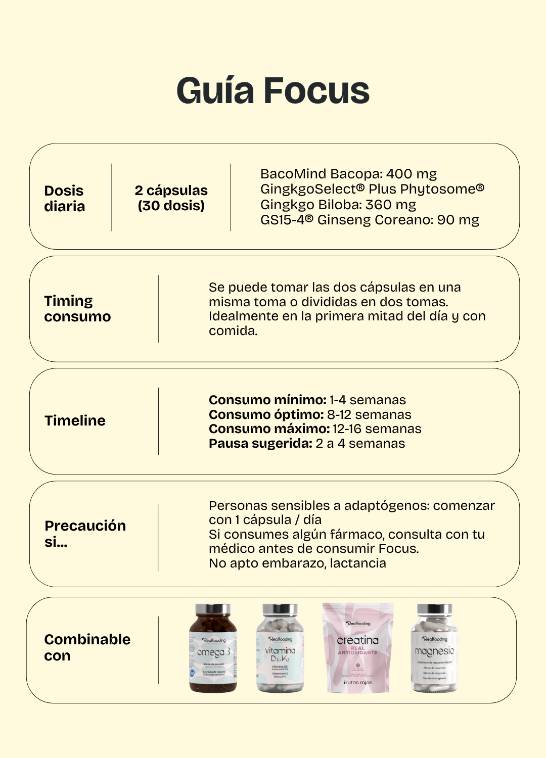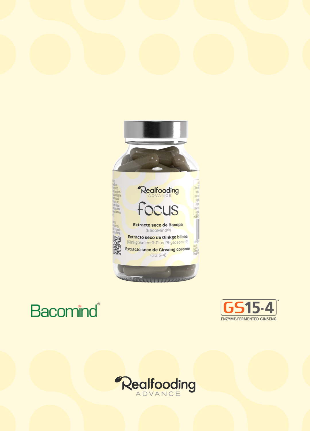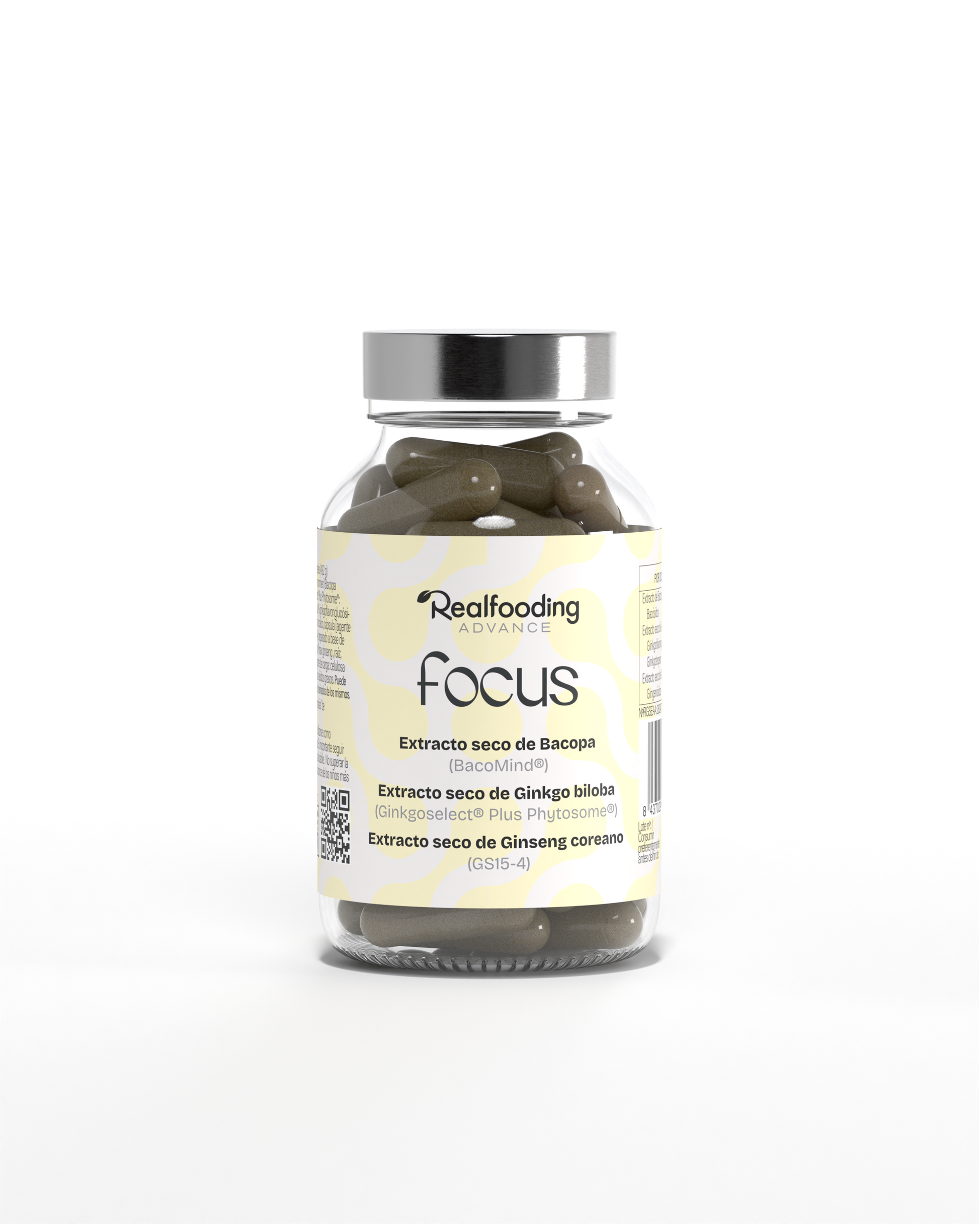 *La dosis diaria aporta 400 mg de extracto seco de Bacopa monnieri (BacoMind®), 360 mg de extracto seco de Ginkgo biloba (Ginkgoselect® Plus Phytosome®) y 90 mg de extracto seco de ginseng coreano (GS15-4®).