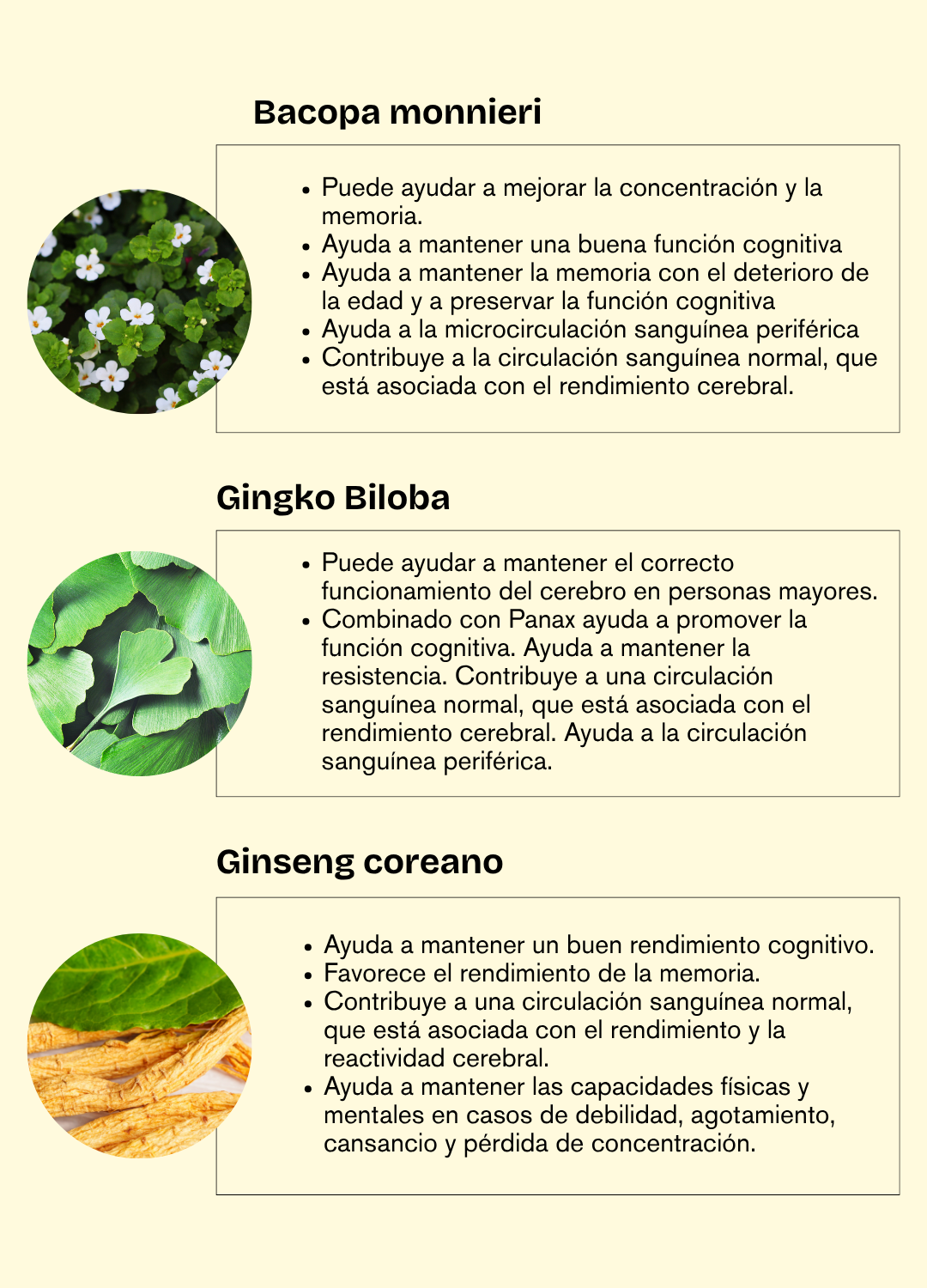 - ** El ginseng coreano (Panax Ginseng) ayuda a mantener un buen rendimiento cognitivo.